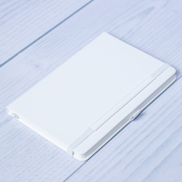 This notebook features a sleek, matte-finish cover with rounded edges, an elastic closure, pen loop, and ribbon bookmark—ideal for everyday use.