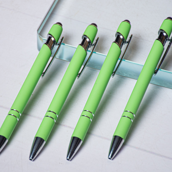 This versatile ballpoint pen is designed to combine everyday functionality with modern convenience. Featuring a comfortable soft-touch barrel available in a wide range of bold and subtle colors, it offers a smooth grip and stylish appeal. Chrome detailing, including a sleek clip and ring accents, adds a professional touch to its modern look. At the top, a built-in stylus makes it easy to switch from paper to touchscreen without missing a beat—ideal for smartphones, tablets, or touchscreen laptops. Whether used in the office, classroom, or on the go, this pen offers a practical and colorful writing solution for any setting.